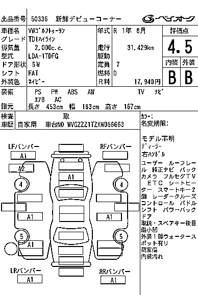 VOLKSWAGEN GOLF TOURAN - лот 50336