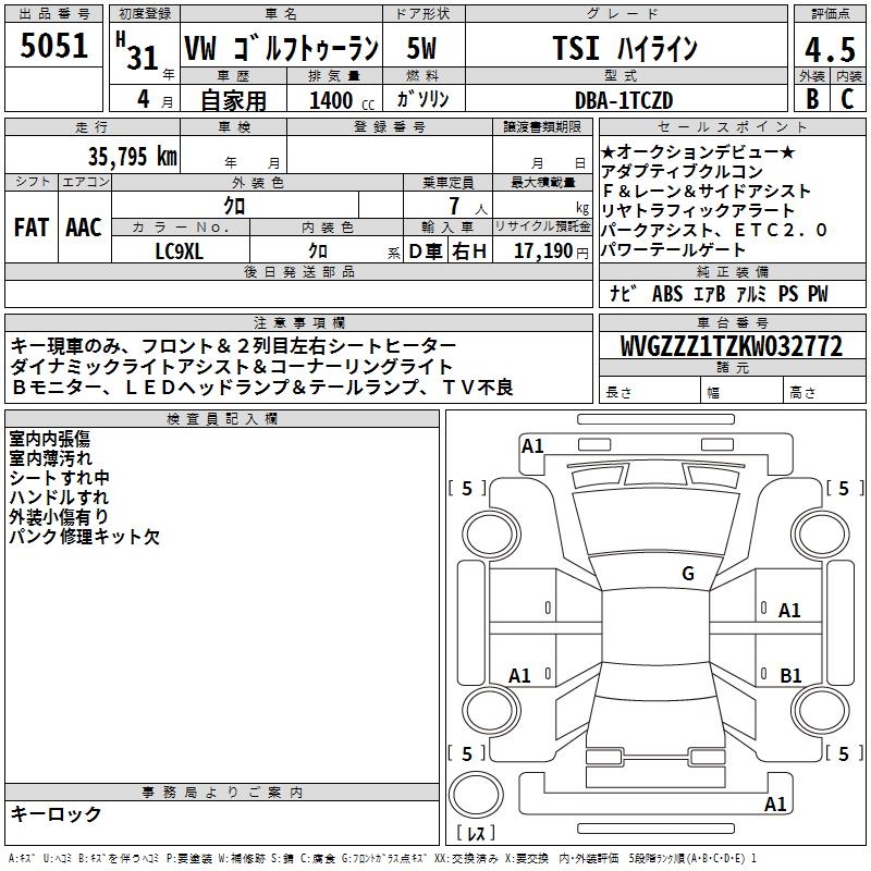 VOLKSWAGEN GOLF TOURAN - лот 5051