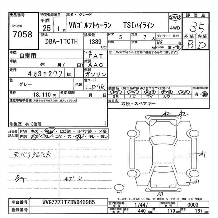 VOLKSWAGEN GOLF TOURAN - лот 7058