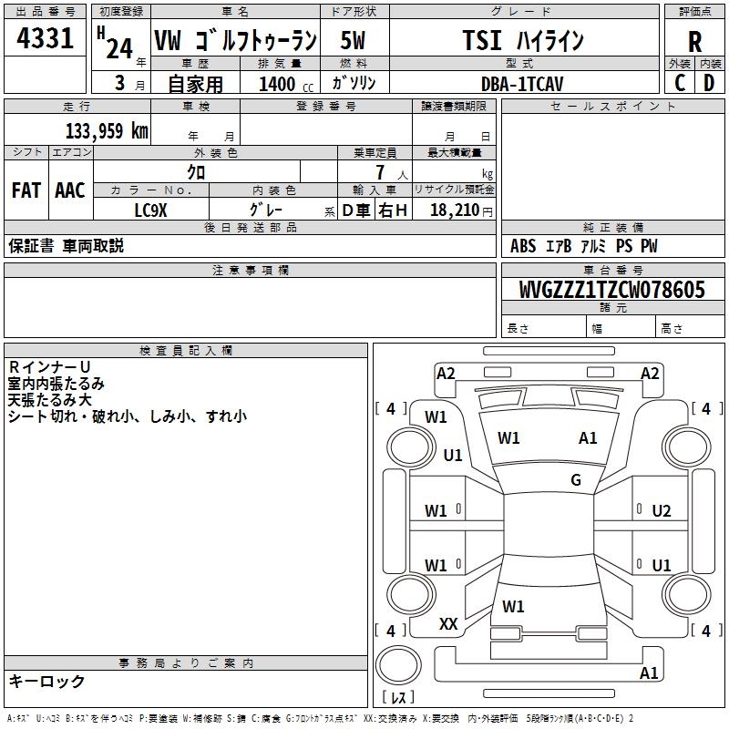 VOLKSWAGEN GOLF TOURAN - лот 4331