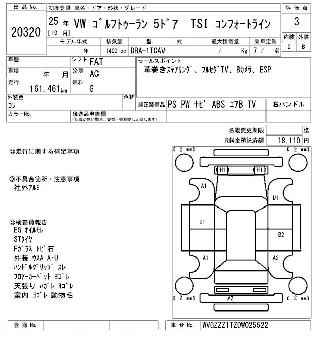 VOLKSWAGEN GOLF TOURAN - лот 20320