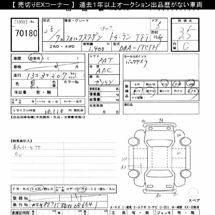VOLKSWAGEN GOLF TOURAN - лот 70180