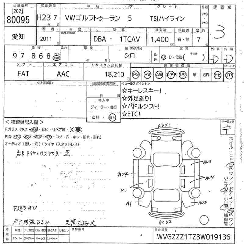 VOLKSWAGEN GOLF TOURAN - лот 80095