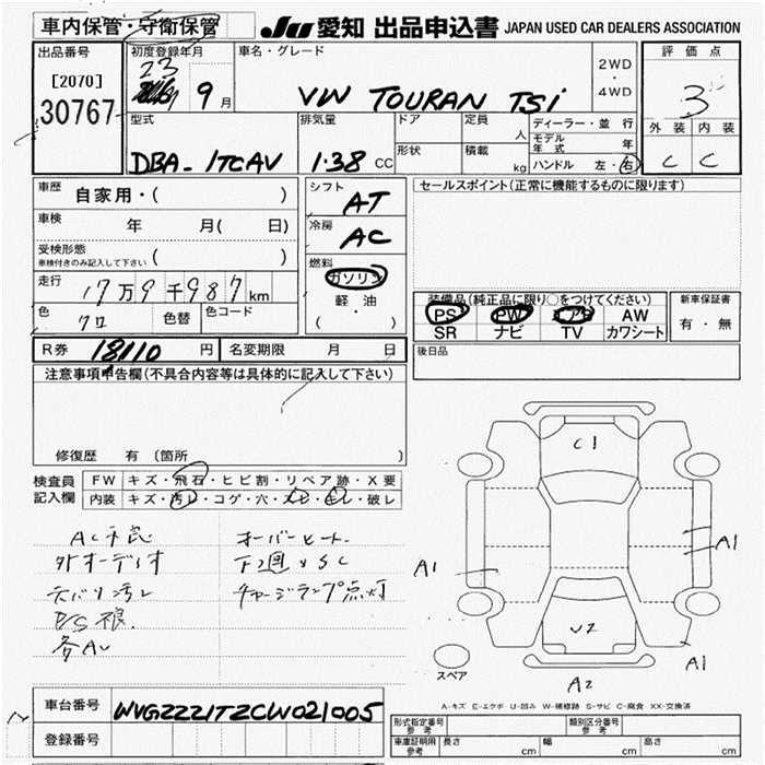 VOLKSWAGEN GOLF TOURAN - лот 30767