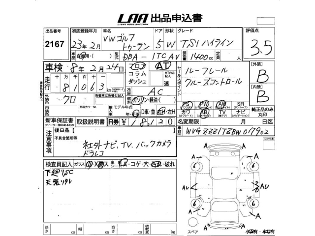 VOLKSWAGEN GOLF TOURAN - лот 2167
