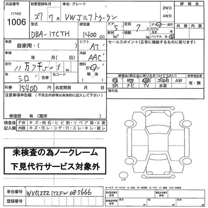 VOLKSWAGEN GOLF TOURAN - лот 1006