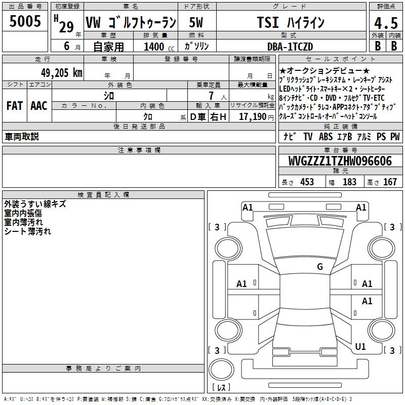 VOLKSWAGEN GOLF TOURAN - лот 5005