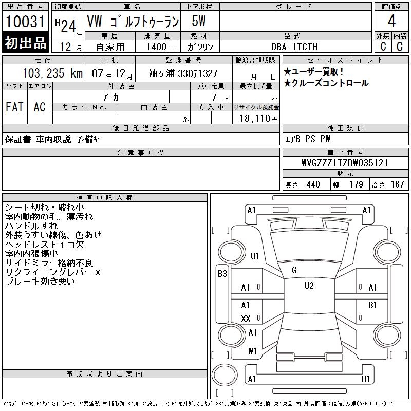 VOLKSWAGEN GOLF TOURAN - лот 10031