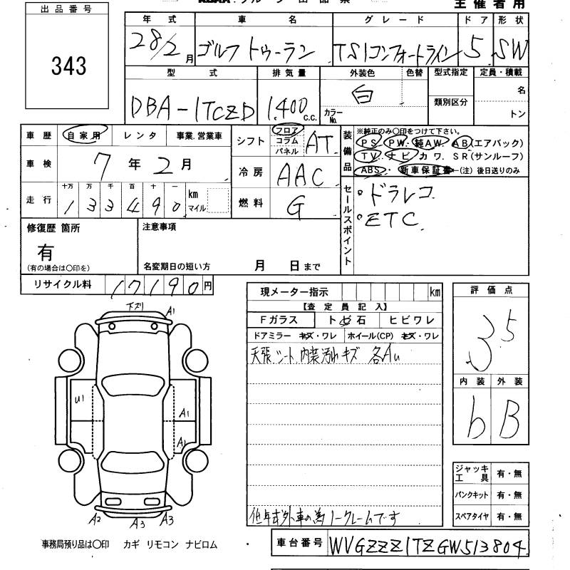 VOLKSWAGEN GOLF TOURAN - лот 343