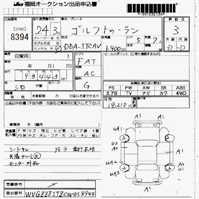 VOLKSWAGEN GOLF TOURAN - лот 8394