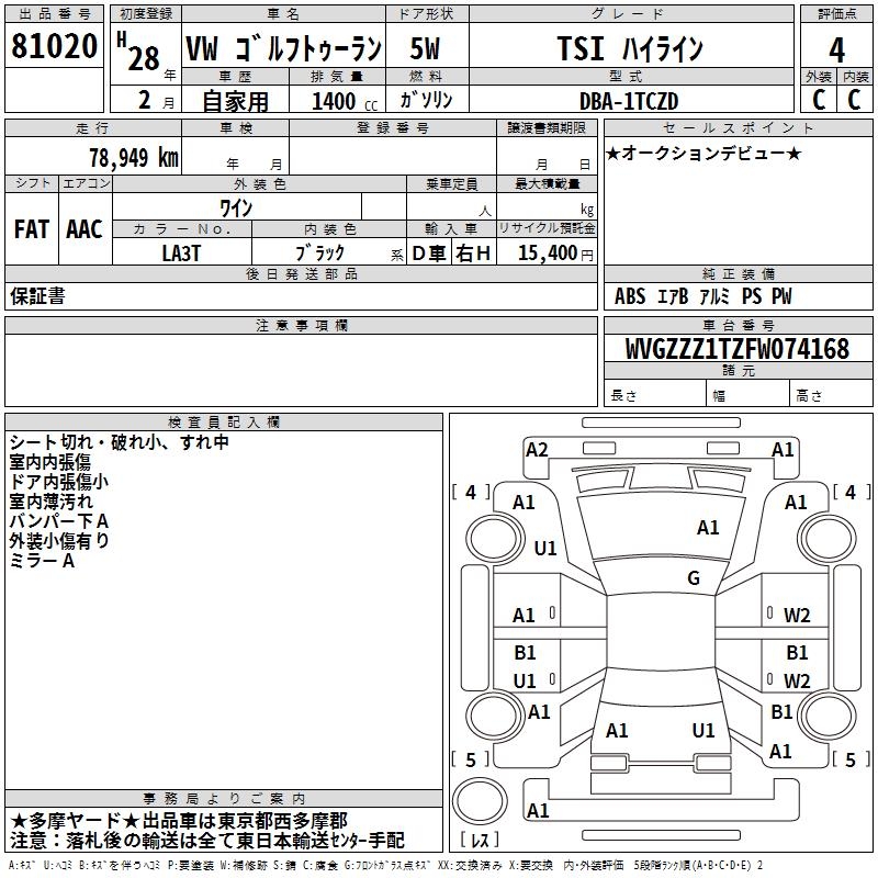 VOLKSWAGEN GOLF TOURAN - лот 81020