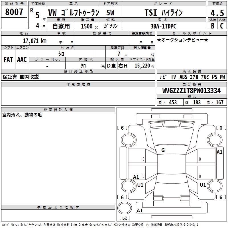 VOLKSWAGEN GOLF TOURAN - лот 8007