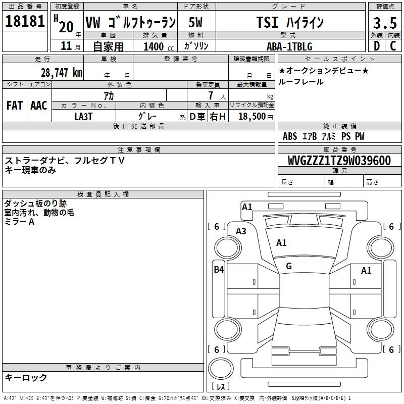 VOLKSWAGEN GOLF TOURAN - лот 18181