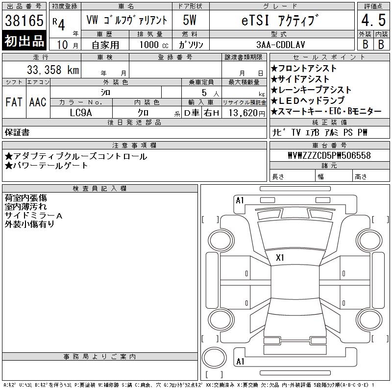 VOLKSWAGEN GOLF VARIANT - лот 38165