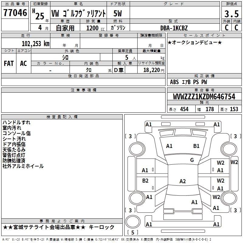 VOLKSWAGEN GOLF VARIANT - лот 77046