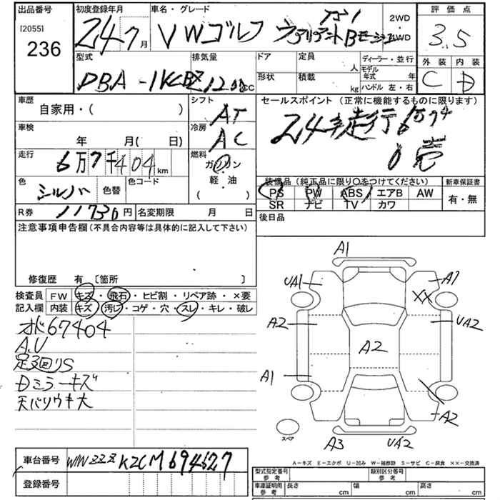 VOLKSWAGEN GOLF VARIANT - лот 236