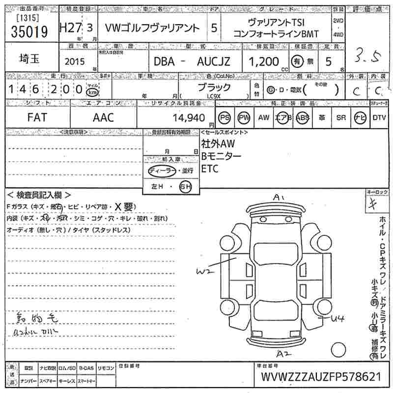 VOLKSWAGEN GOLF VARIANT - лот 35019
