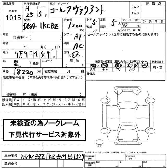 VOLKSWAGEN GOLF VARIANT - лот 1015