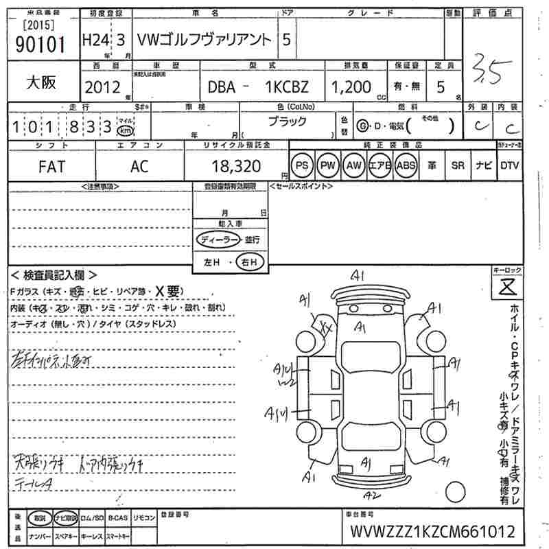 VOLKSWAGEN GOLF VARIANT - лот 90101