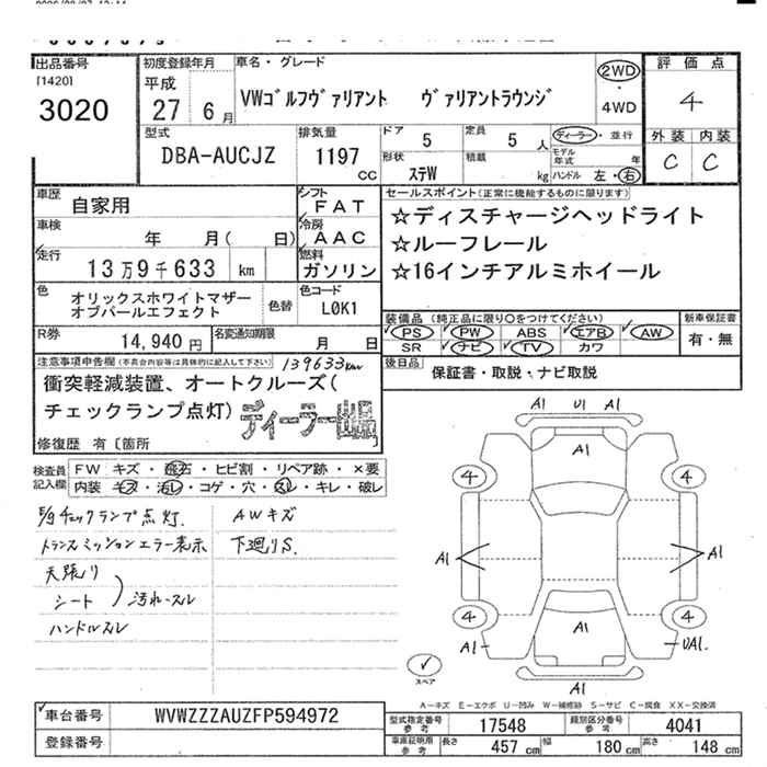 VOLKSWAGEN GOLF VARIANT - лот 3020