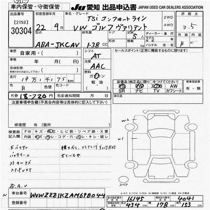 VOLKSWAGEN GOLF VARIANT - лот 30304