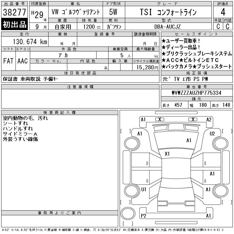VOLKSWAGEN GOLF VARIANT - лот 38277