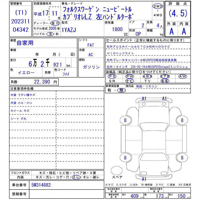 VOLKSWAGEN NEW BEETLE - лот 4728