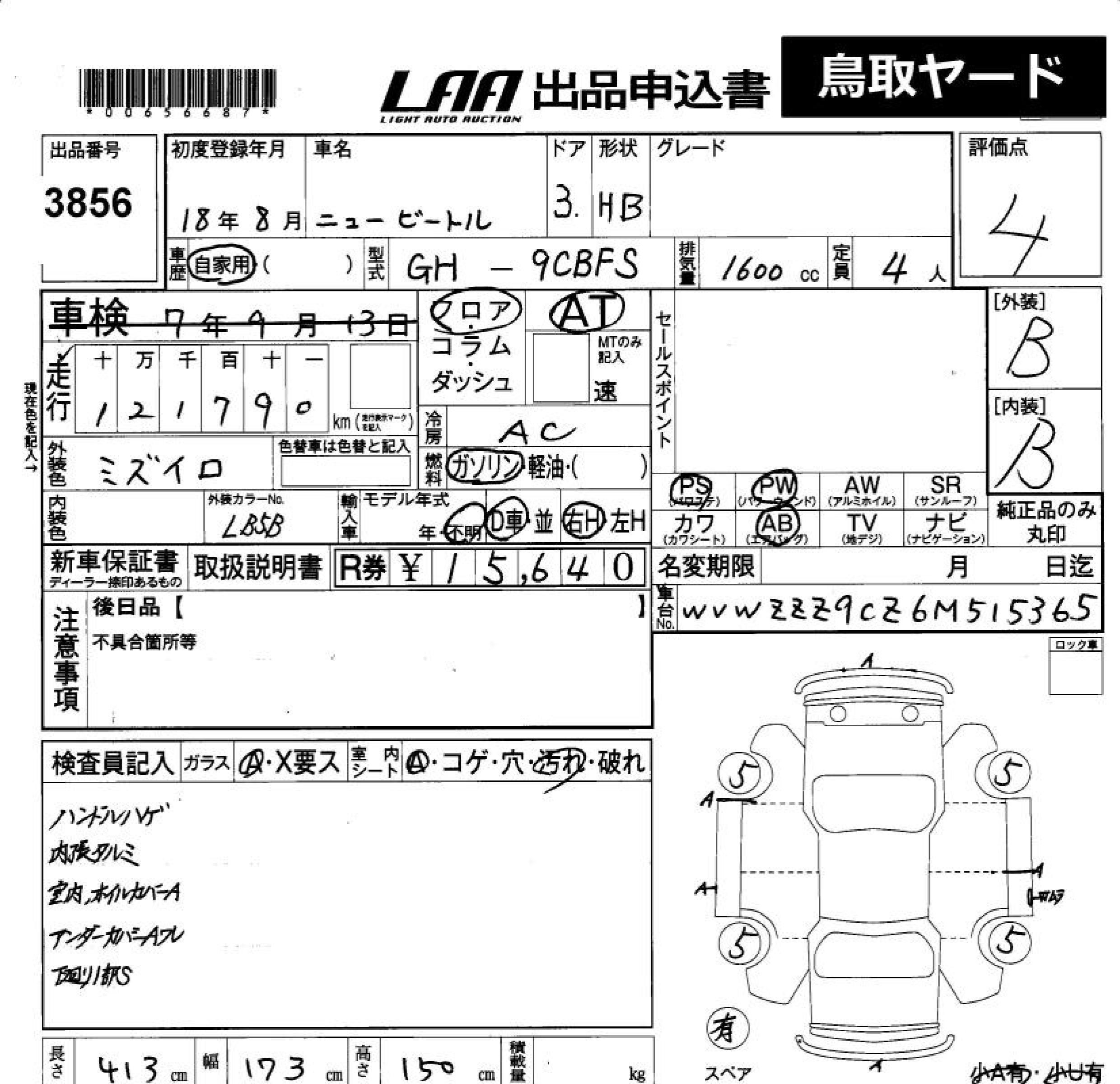 VOLKSWAGEN NEW BEETLE - лот 3856