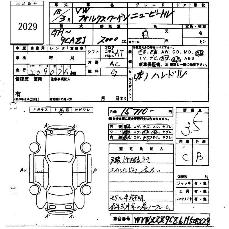 VOLKSWAGEN NEW BEETLE - лот 2029