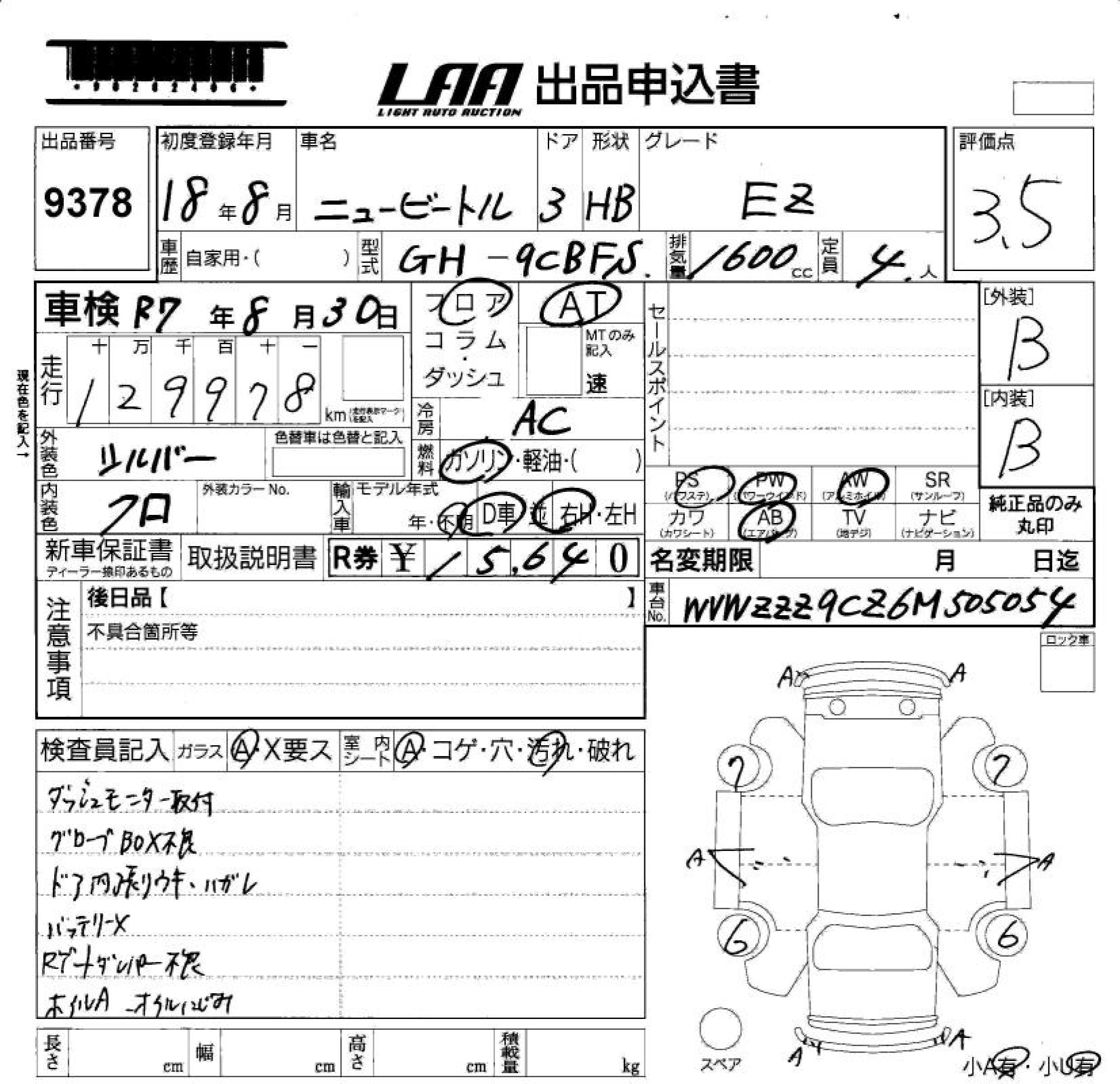 VOLKSWAGEN NEW BEETLE - лот 9378