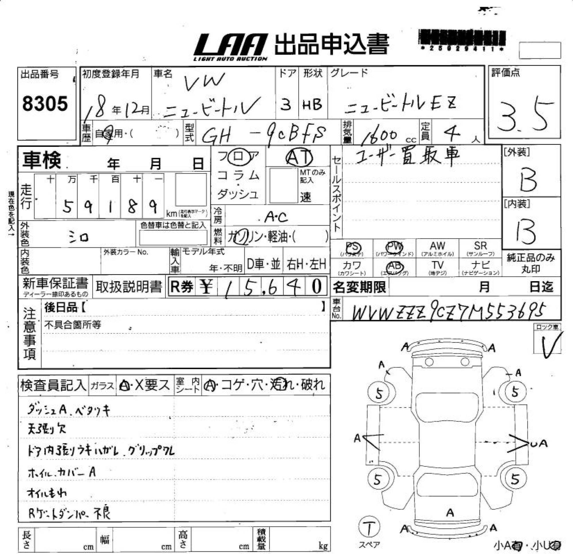 VOLKSWAGEN NEW BEETLE - лот 8305