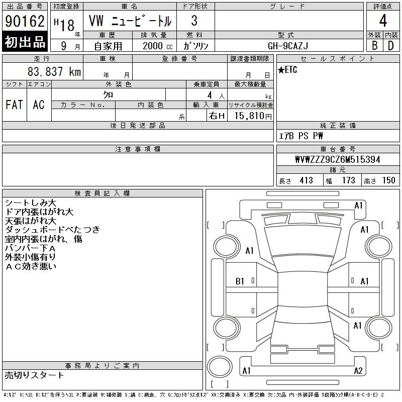 VOLKSWAGEN NEW BEETLE - лот 90162