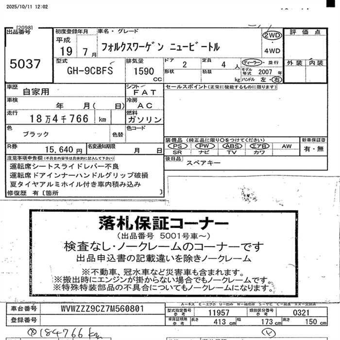 VOLKSWAGEN NEW BEETLE - лот 5037