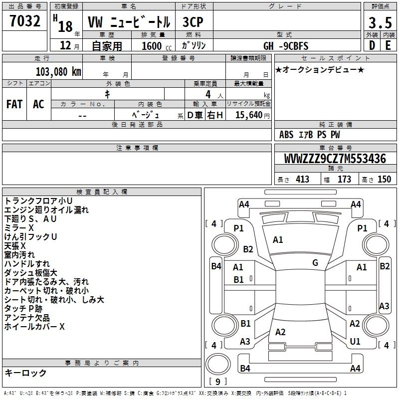 VOLKSWAGEN NEW BEETLE - лот 7032