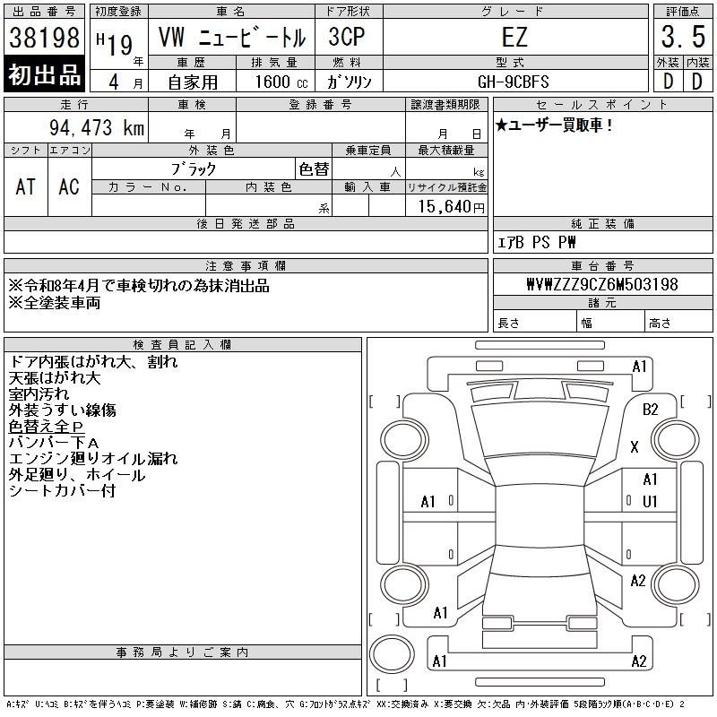 VOLKSWAGEN NEW BEETLE - лот 38198