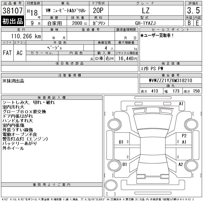VOLKSWAGEN NEW BEETLE - лот 38107