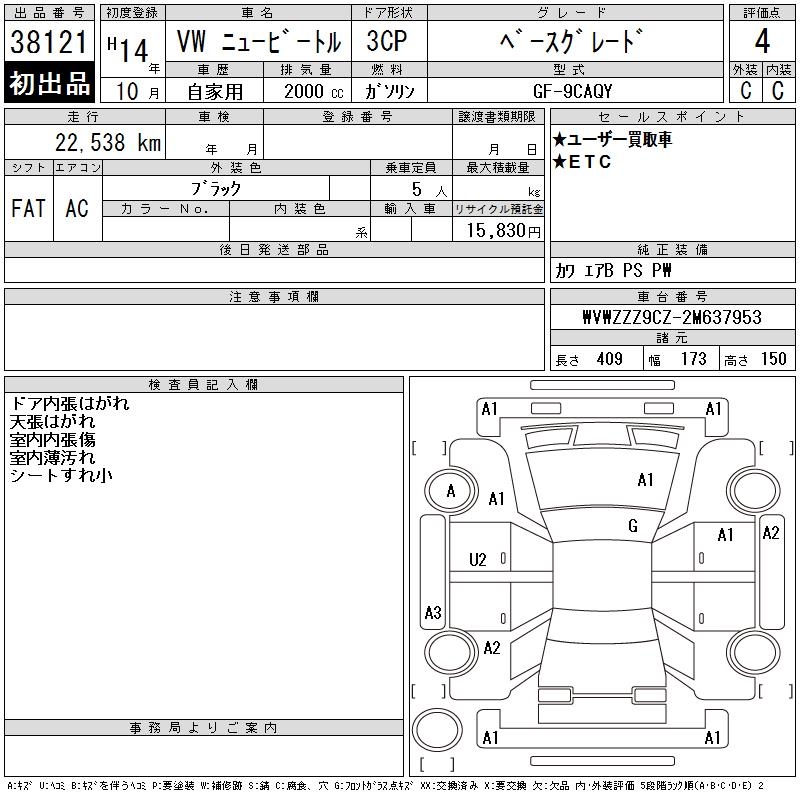 VOLKSWAGEN NEW BEETLE - лот 38121