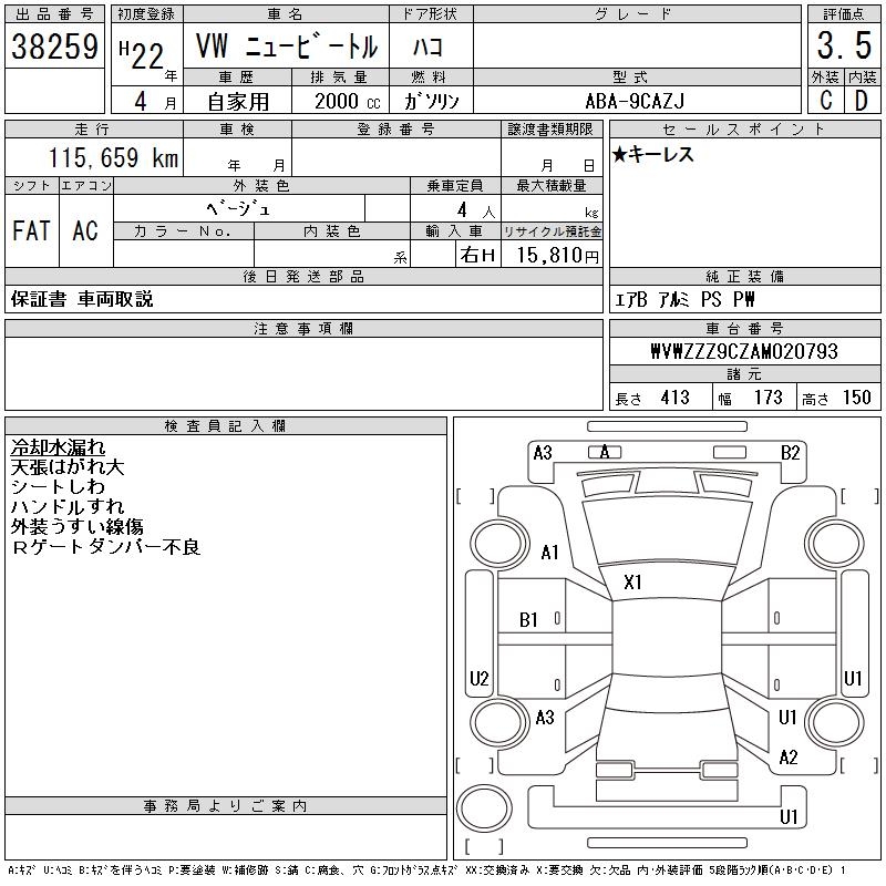 VOLKSWAGEN NEW BEETLE - лот 38259