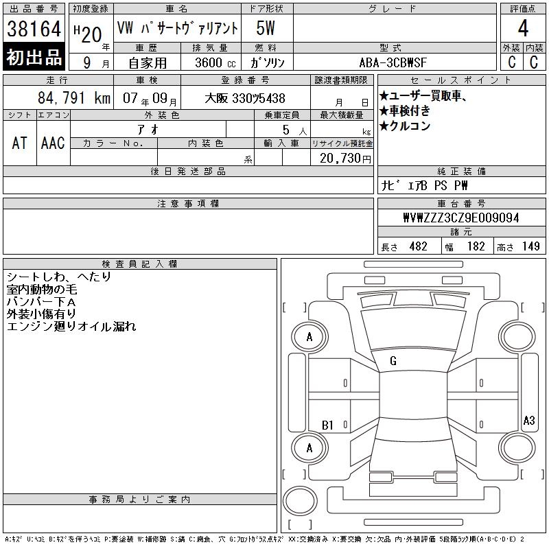 VOLKSWAGEN PASSAT VARIANT - лот 38164