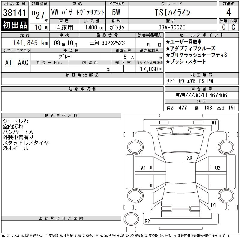 VOLKSWAGEN PASSAT VARIANT TSI HIGH LINE - лот 38141