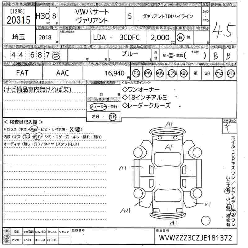 VOLKSWAGEN PASSAT VARIANT VARIANT TDI HIGH LINE - лот 20315
