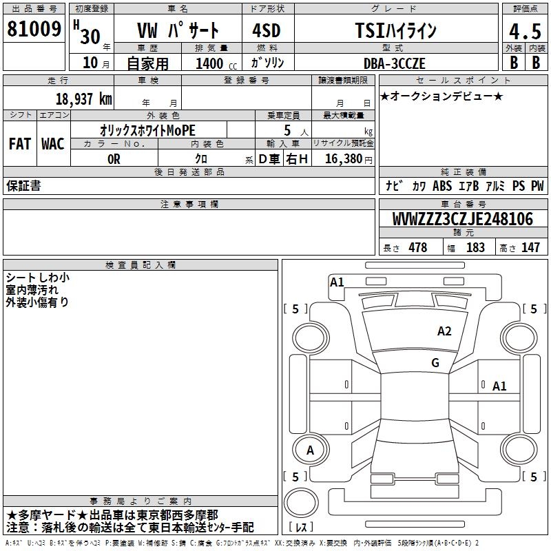 VOLKSWAGEN PASSAT TSI HIGH LINE - лот 81009