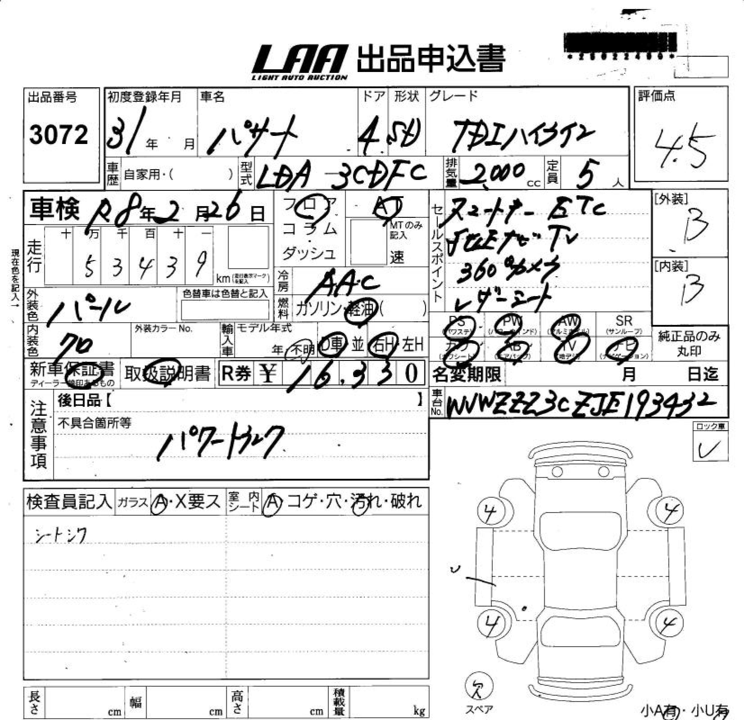 VOLKSWAGEN PASSAT TDI HIGH LINE - лот 3072