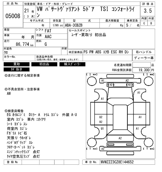 VOLKSWAGEN PASSAT VARIANT - лот 5008