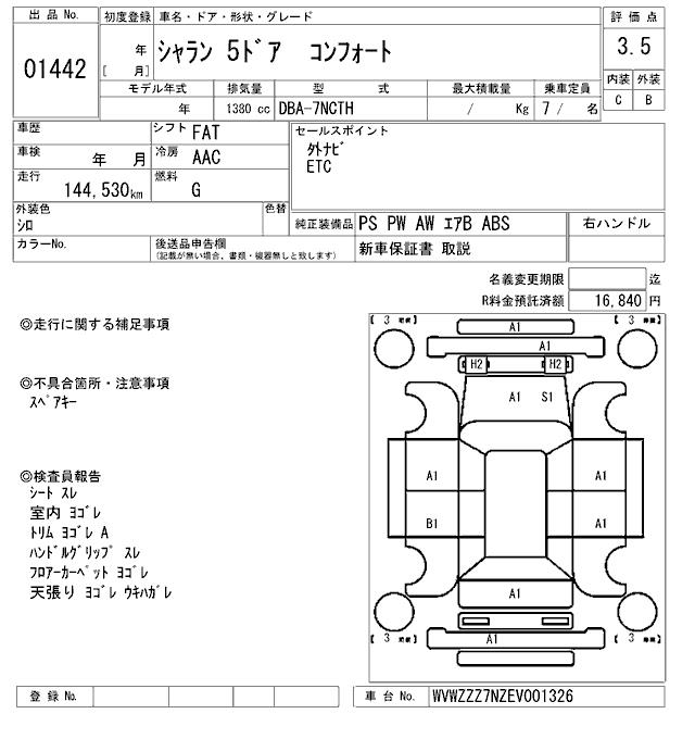 VOLKSWAGEN SHARAN - лот 1442
