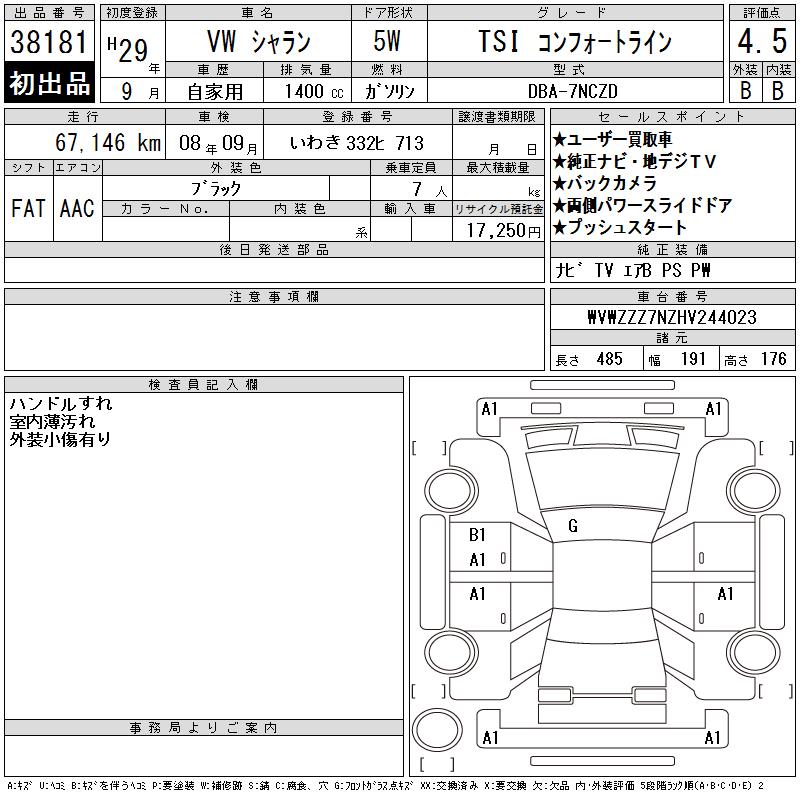 VOLKSWAGEN SHARAN TSI COMFORT LINE - лот 38181