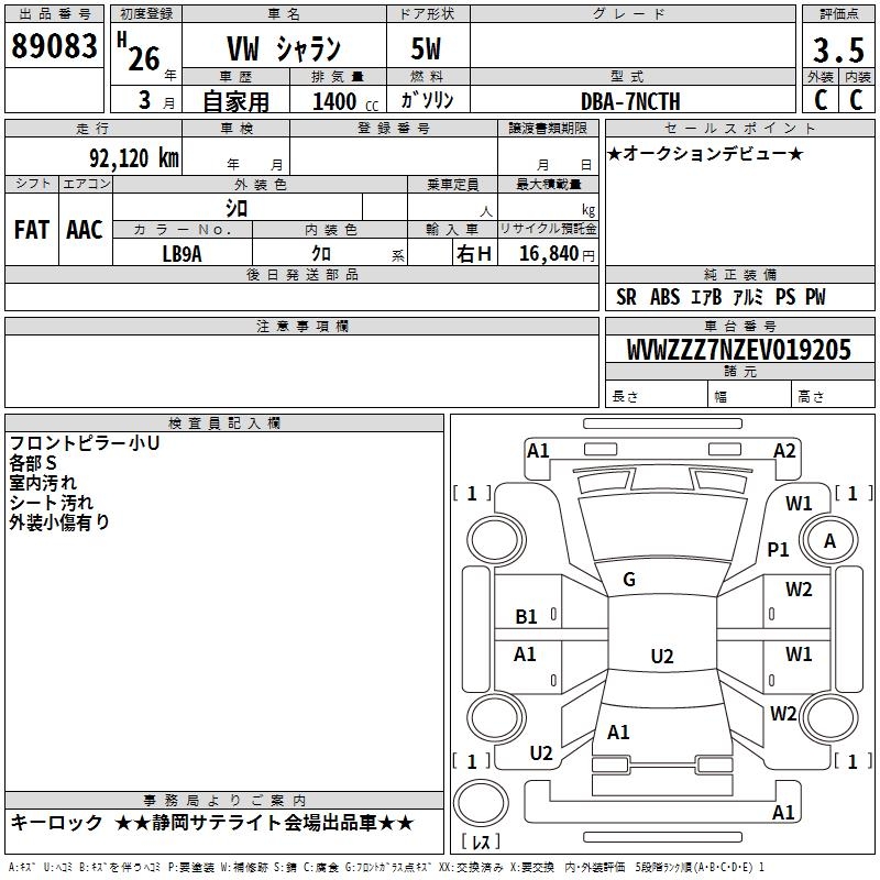 VOLKSWAGEN SHARAN - лот 89083