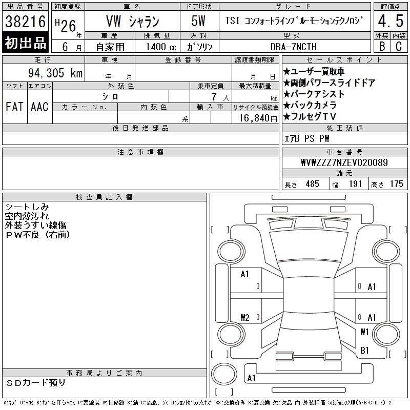 VOLKSWAGEN SHARAN - лот 38216