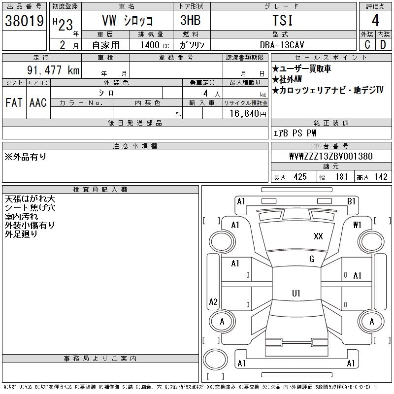 VOLKSWAGEN SIROCCO TSI - лот 38019