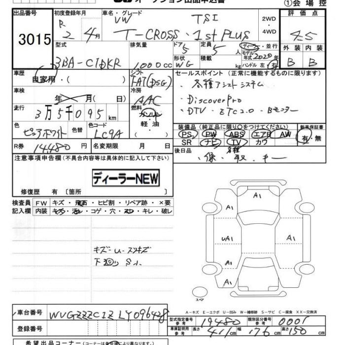 VOLKSWAGEN T-CROSS TSI 1st plus - лот 3015